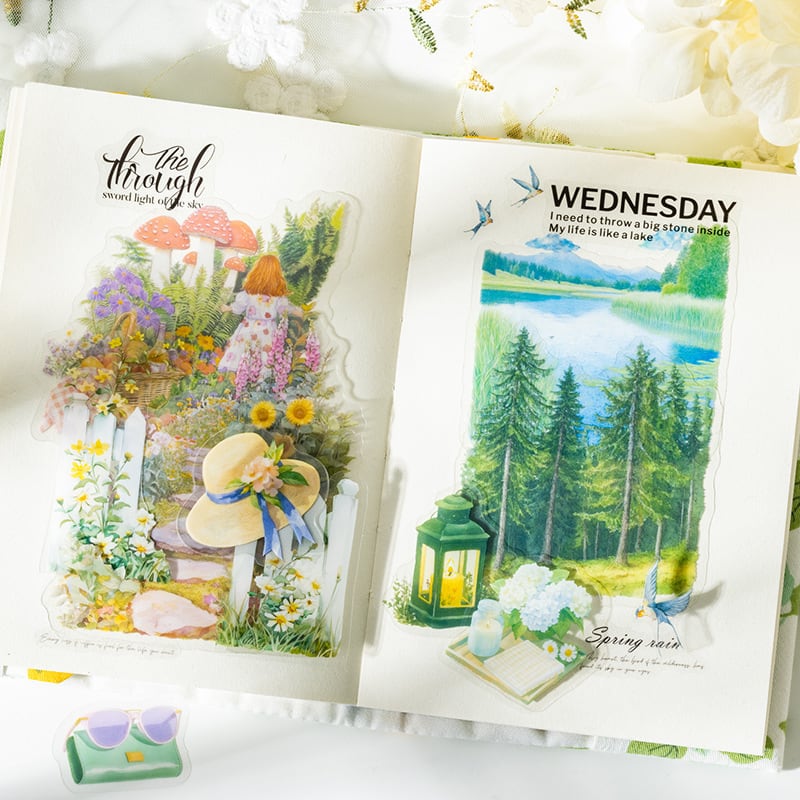 心温まるコラージュの世界を楽しめるフレークシールです。色合いやテイストが一つにまとまった愛らしいでデザインの商品です。