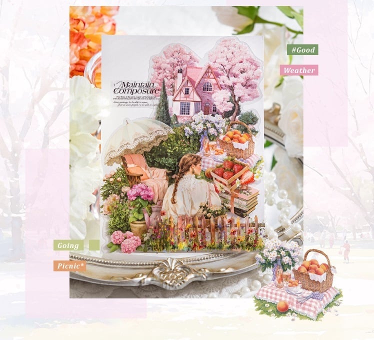 お洒落でレトロな町の風景が描かれたフレークシールです。眺めているだけで心を癒す水彩画スタイルの美しいデザインは、1枚でも存在感があり、お好きな場所に貼るだけで華やかな雰囲気を演出します。