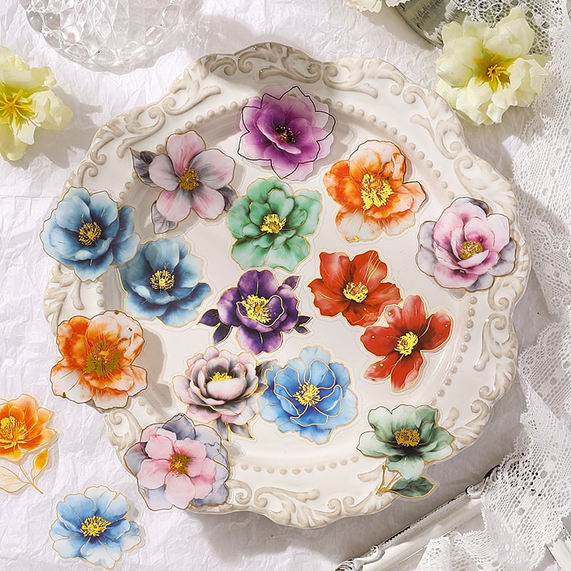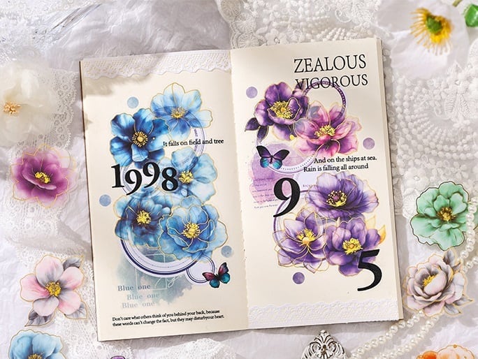 美しい花々が魅力的なシールです。手帳やノートへの華やかなアクセントとして、またプレゼントのラッピングの飾り付けにもぴったりです。コラージュにちょっとした特別感をプラスしてくれます。