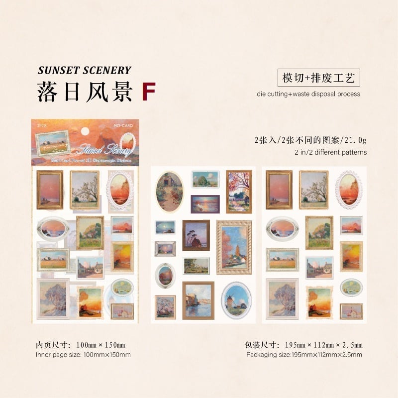 美術館の名画をモチーフにしたカードのような厚紙で作られた立体的なシールです。アートを身近に感じながら手帳やノートのデコレーションにぴったり。心に響く美しいデザインが、コラージュを彩ります。お気に入りの作品と共に、自分だけのスタイルをお楽しみください。