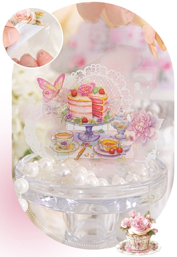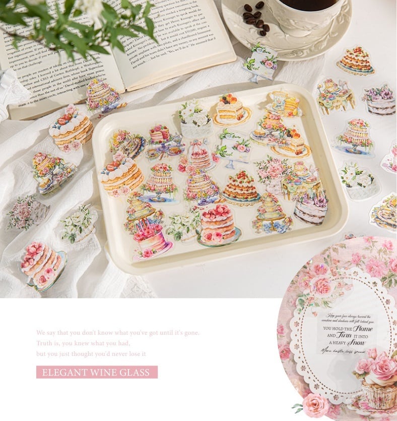 アンティークな魅力が詰まった美しいデザインがお洒落なフレークシールです。華やかな花々は、手帳やノートのデコレーションに最適です。