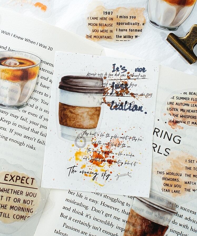 多様なアレンジが楽しめるコーヒーをテーマにしたシールです。手軽に貼り付けるだけで、手帳やノート、コラージュ作品に素敵なアクセントを加えます。創造力を活かして自由にお楽しみください。