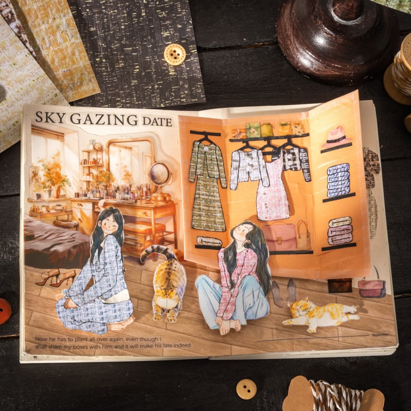 立体的なリアルなボタンが付属されている素材紙セットです。おしゃれなデザインで、使うシーンを選びません。手帳やノート、ラッピングに合わせて、自由にアレンジをお楽しみください。