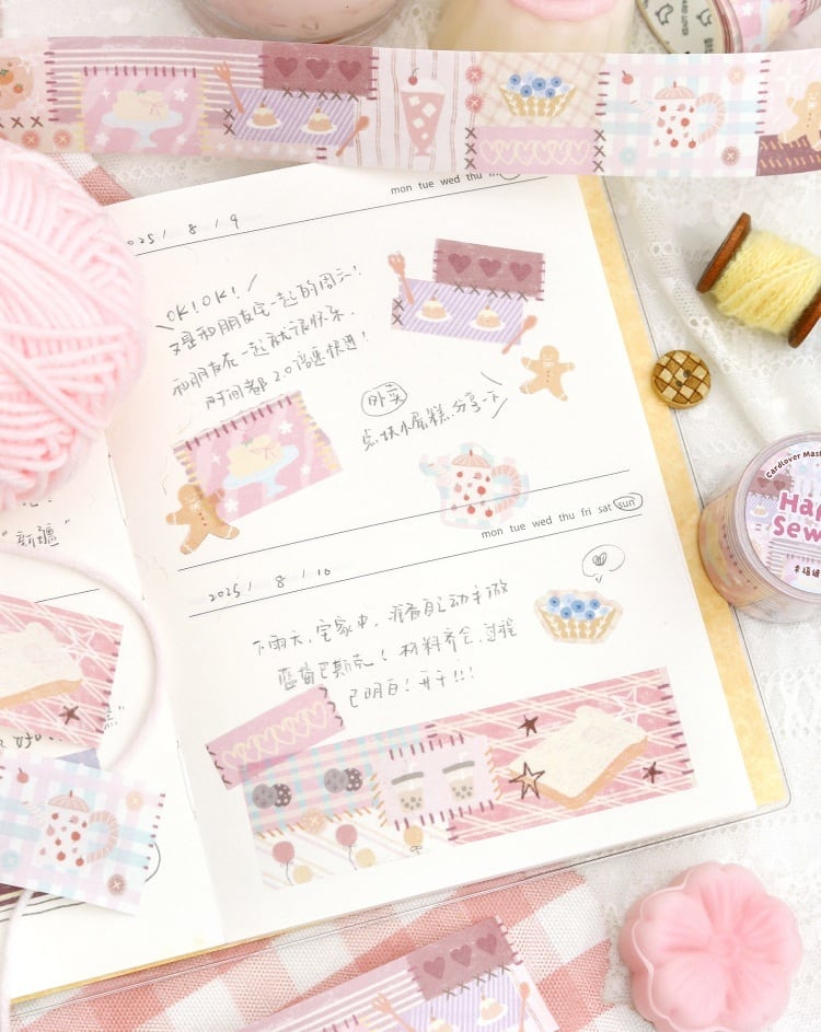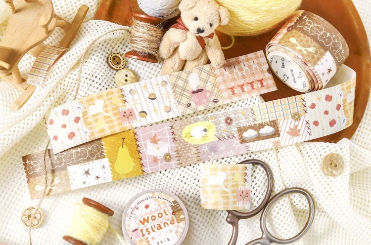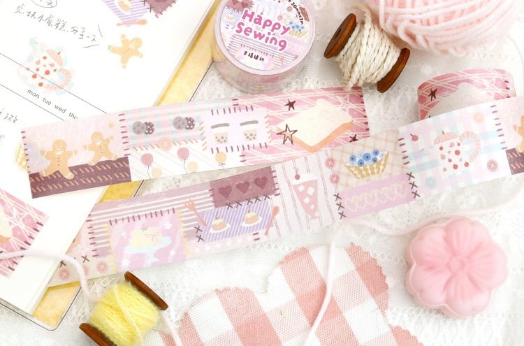 キュートなパッチワークデザインが魅力のマスキングテープは、手帳やクラフト作品に彩りを添えます。様々なモチーフが組み合わさり、コラージュやデコレーションにピッタリ。お洒落で個性的な仕上がりを実現します。