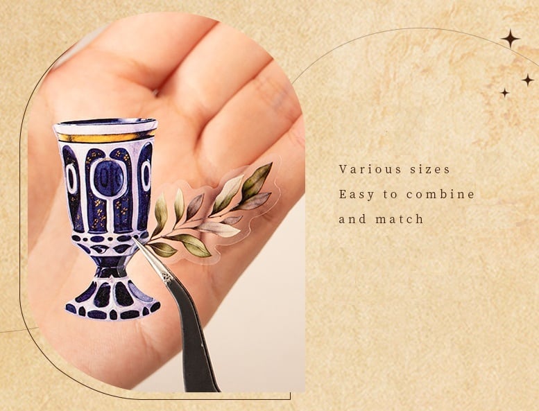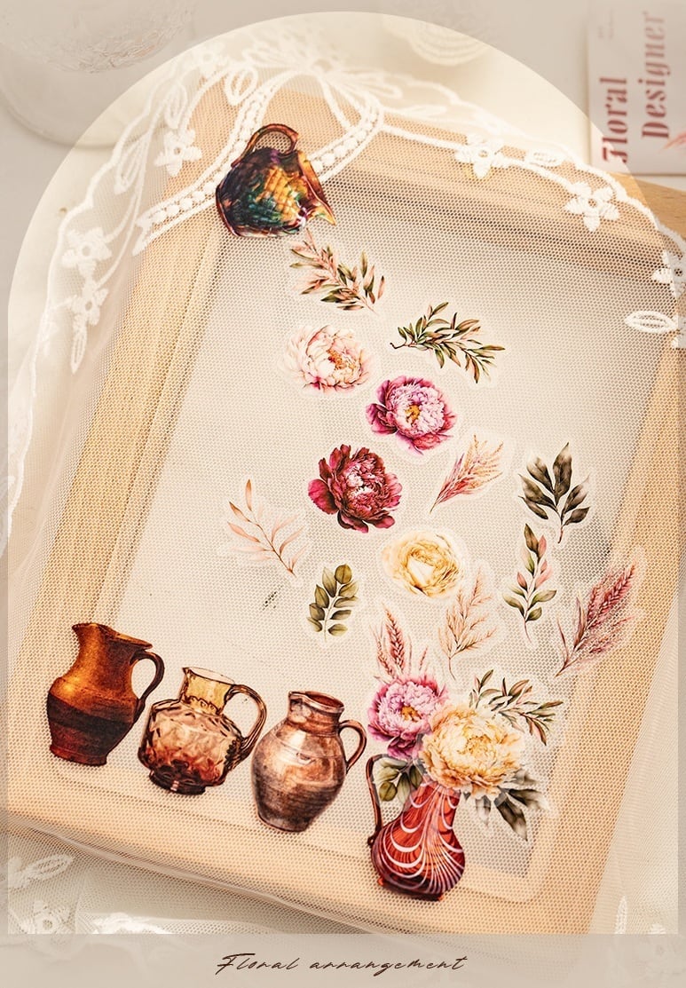 水彩のタッチが美しい、花瓶とお花のシールです。紙ならではの優しい風合いの白牛皮紙と印刷が鮮明でクリアなPET素材の2種類の素材が入っており、いろいろな組み合わせでお楽しみいただけます。