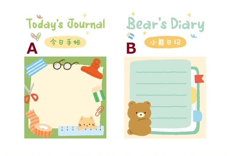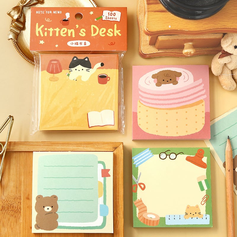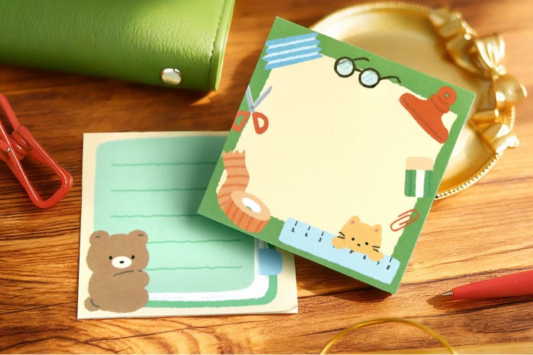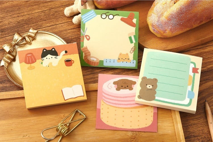 毎日のメモ書きが楽しくなるキュートな動物たちと文房具がデザインされたメモ帳です。デスクに置くだけでパッと華やかになり、気分を上げてくれます。手帳デコやコラージュ素材としてもおすすめです。