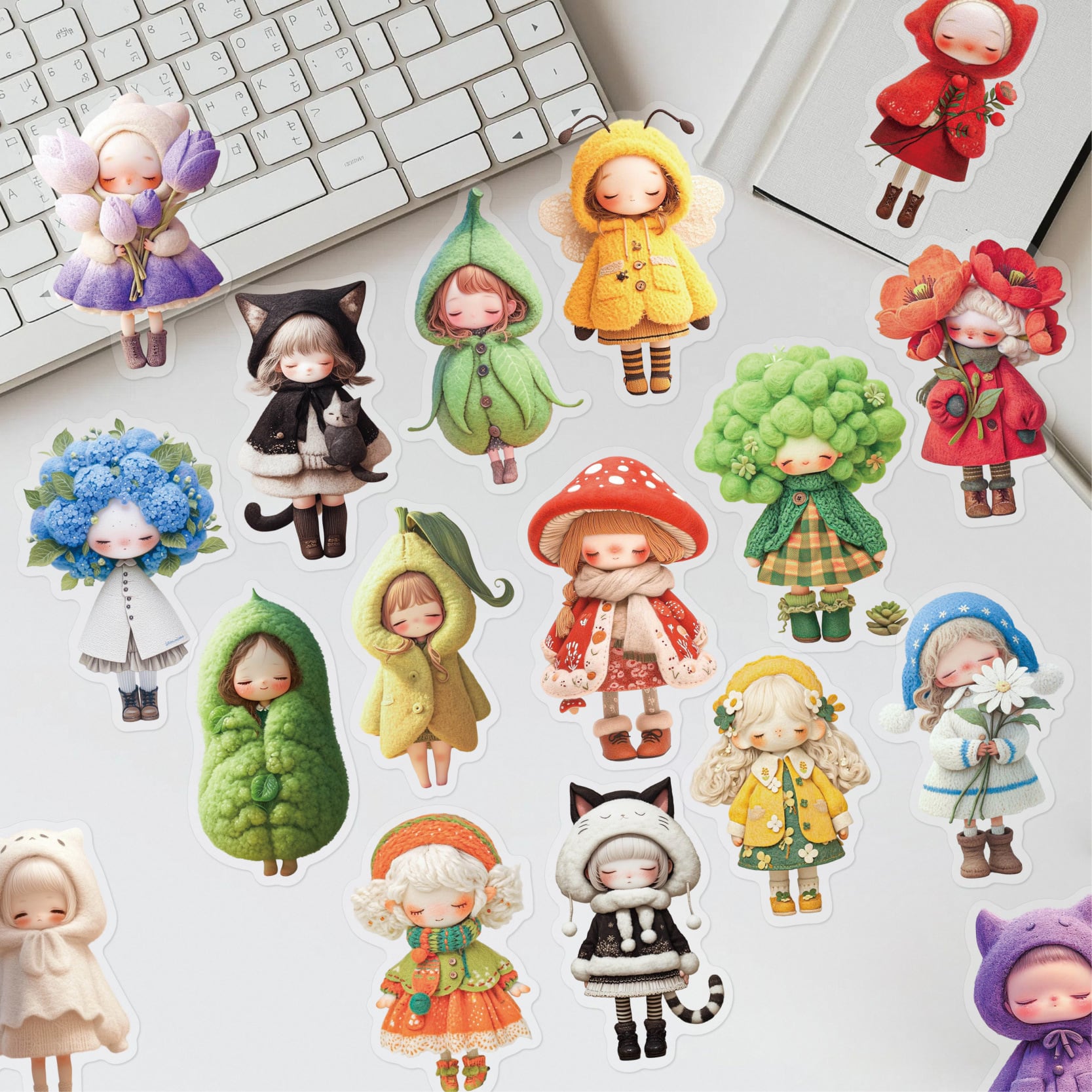 キュートなドールデザインのシールです。立体感のある特殊な印刷が特徴で、貼るだけでファンシーな雰囲気になります。一枚一枚大切に使いたくなるような愛らしいシールを素敵にアレンジして、コラージュをお楽しみください。