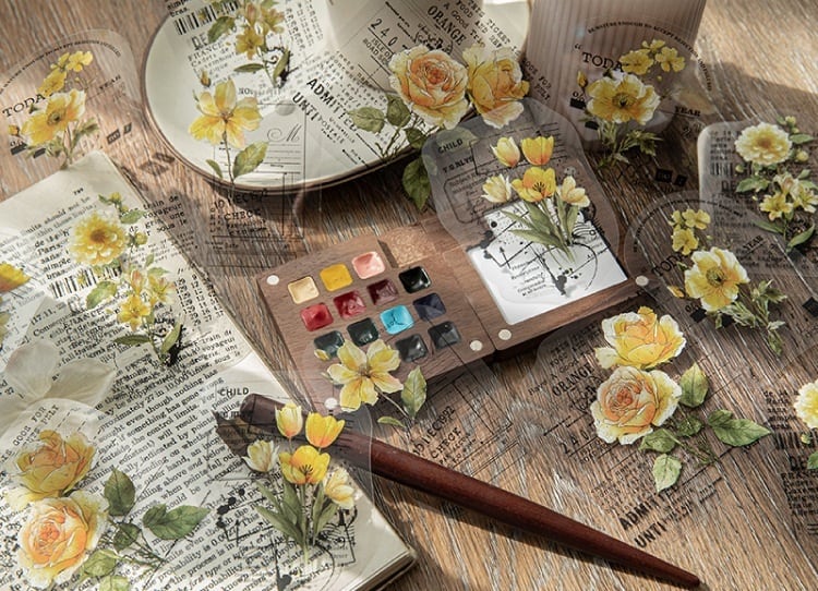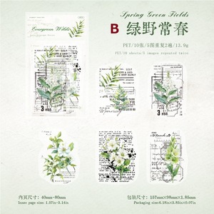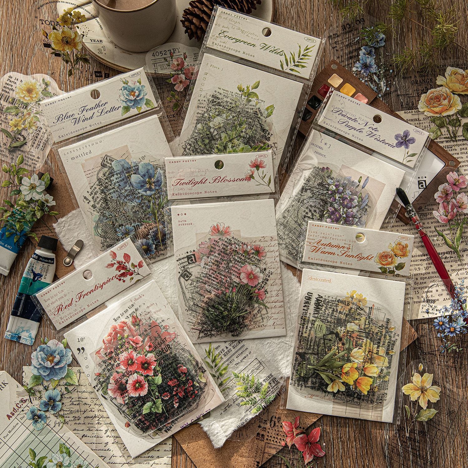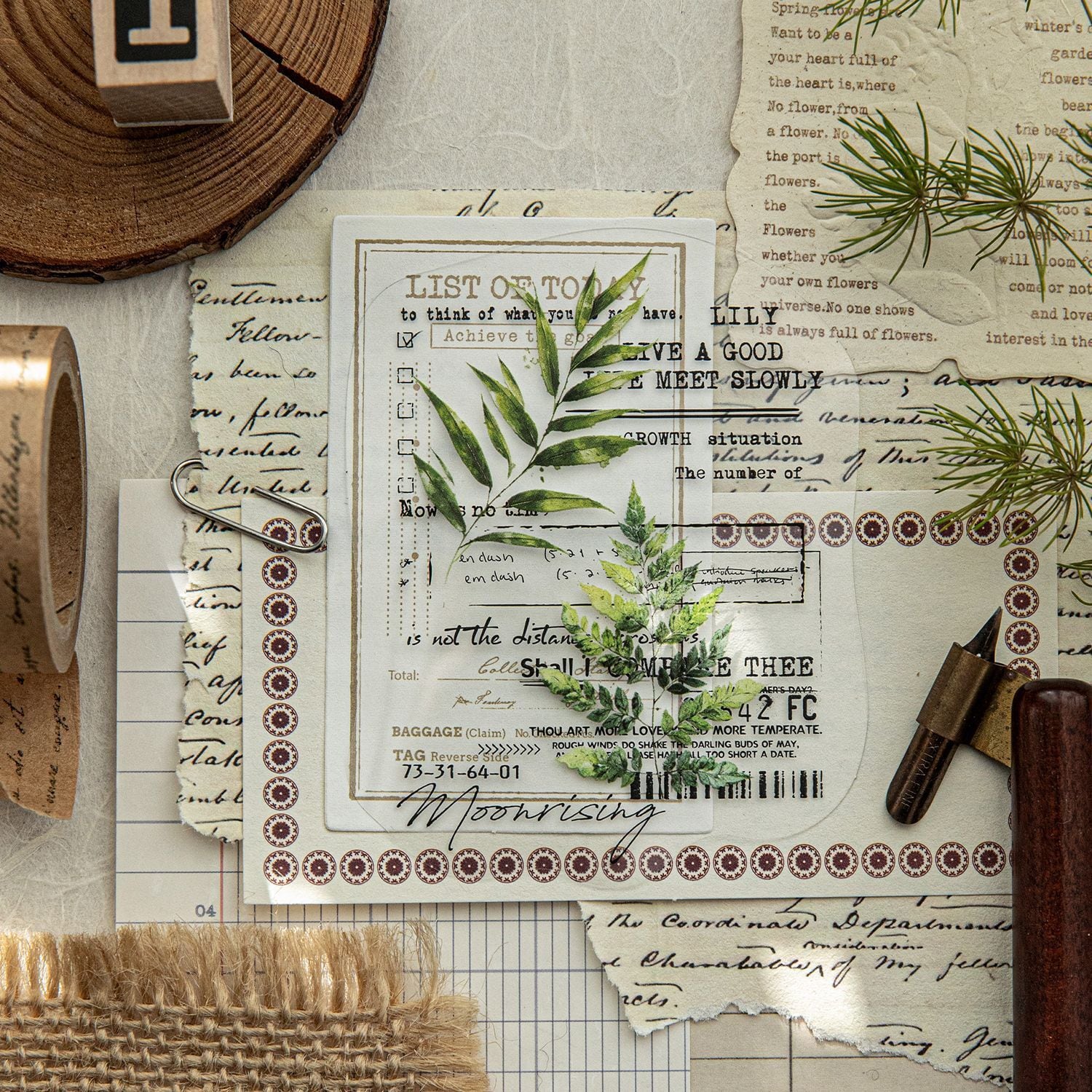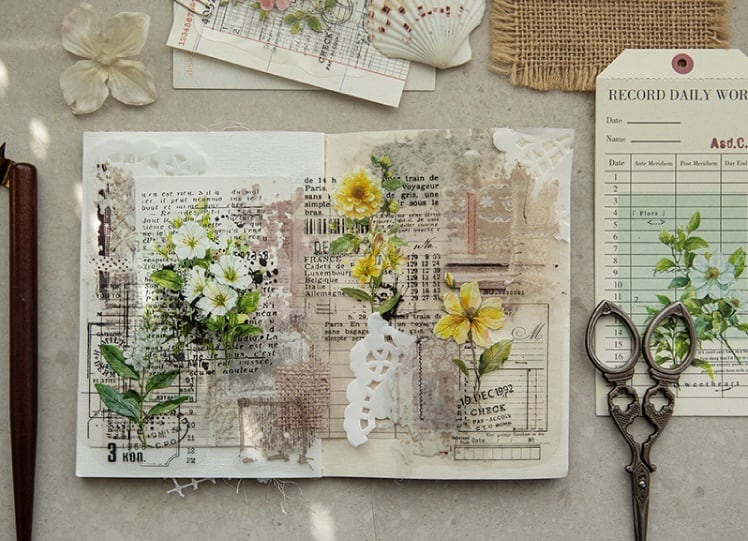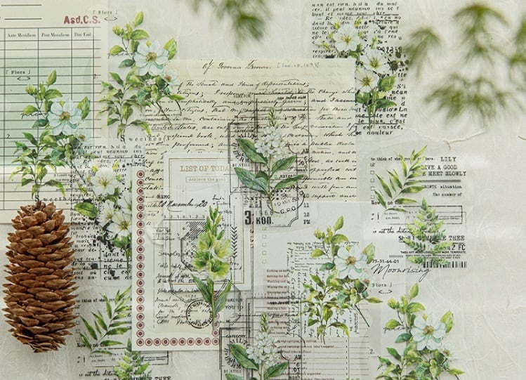 繊細なボタニカルアートとアンティーク調の文字を組み合わせたシールです。草花のイラストはやさしい色合いで描かれており、ノスタルジックで温かみのある雰囲気を演出します。ジャンクジャーナル、スクラップブッキング、手帳デコ、ラッピング、カード作りなど、さまざまなクラフトシーンで活躍。組み合わせ次第で作品の表情がぐっと広がります。自然モチーフやレトロな世界観がお好きな方、コラージュ素材を集めている方におすすめの商品です。