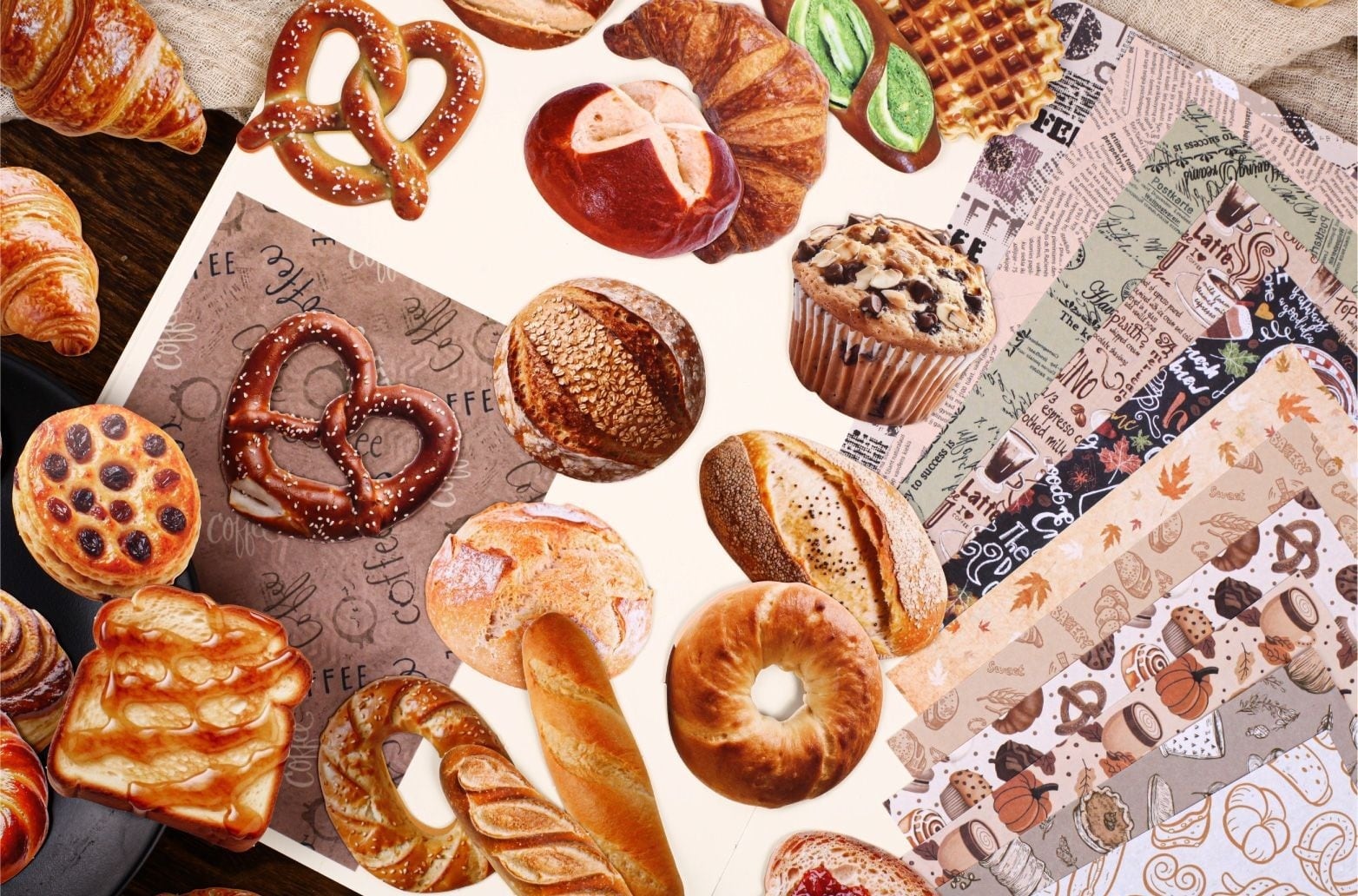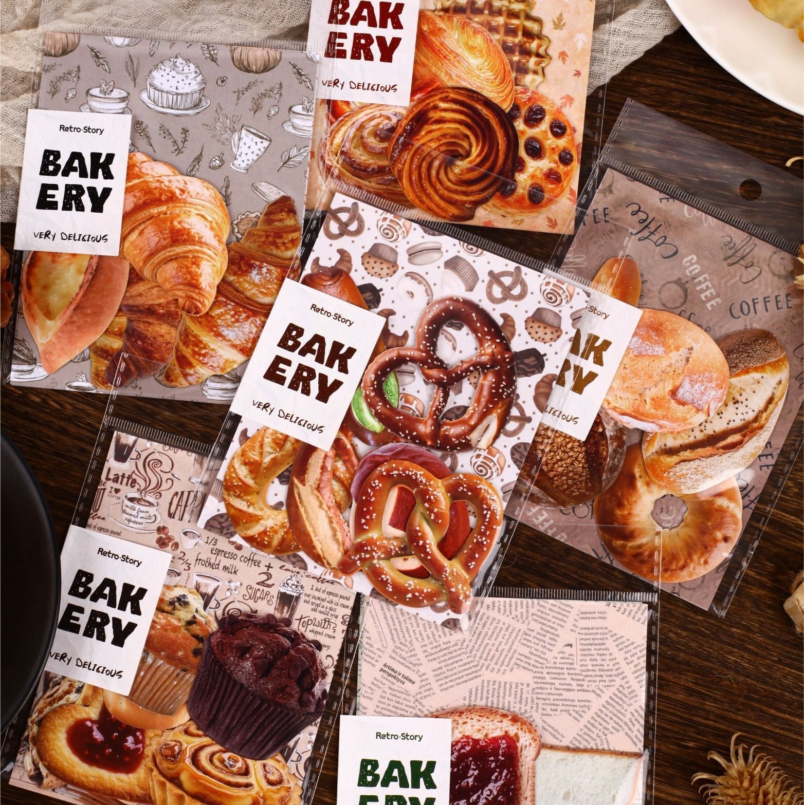 【シール+素材紙】海外 コラージュ素材 紙もの ベーカリー 手帳デコ|Bakery