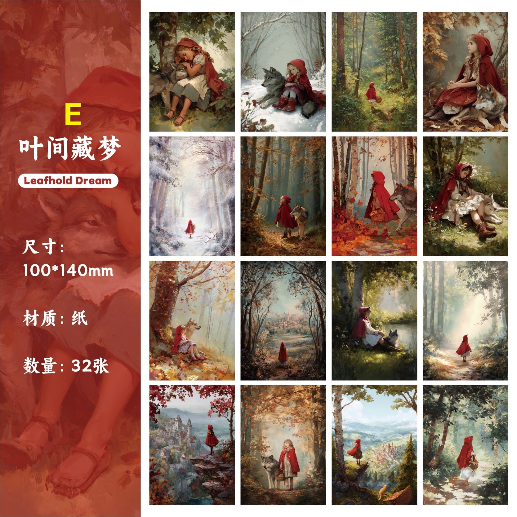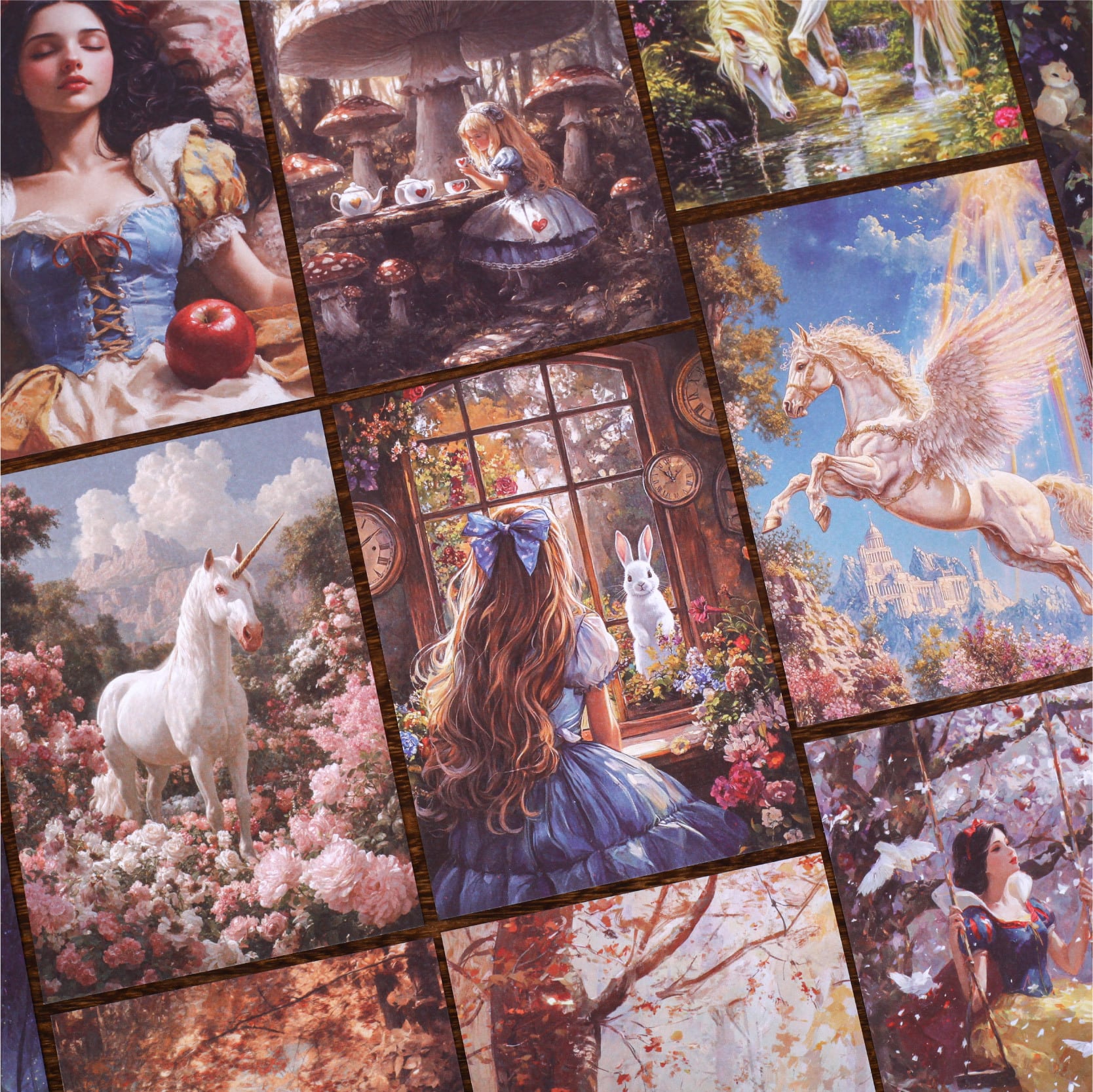 物語のワンシーンを切り取ったような、幻想的な童話モチーフの素材紙です。少女や動物、森や空の情景など、やさしくどこか懐かしさを感じるイラストが揃い、1枚ごとに異なる世界観を楽しめます。絵本のようなタッチと落ち着いた色合いで、コラージュや手帳デコに取り入れると、静かな物語の余韻が広がります。全6種・32枚入りで、コラージュの主役としても使いやすいサイズ感です。切り貼りしたり、1枚をそのまま配置したりと、アレンジの幅も広く、手帳やジャンクジャーナル、スクラップブッキングはもちろん、アートコラージュやディスプレイにもおすすめです。童話の世界観や幻想的なデザインがお好きな方に、ぜひ取り入れていただきたいシリーズです。