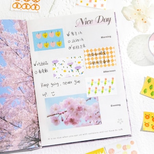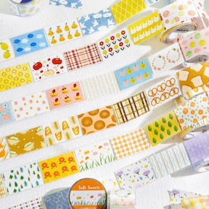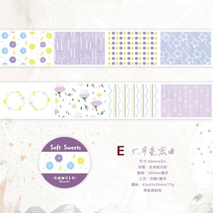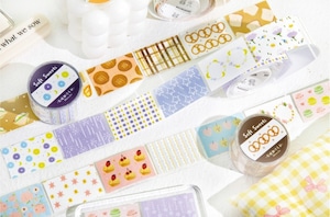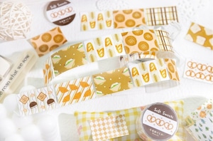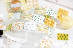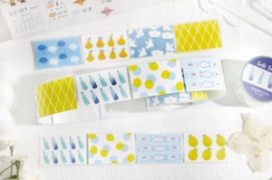 やさしい色合いのフルーツやお菓子、植物や模様をモチーフにしたパターンデザインのロールシールです。主張しすぎない落ち着いたトーンでまとめられており、ページ全体の雰囲気を整えたいときや、背景としてさりげなく使いたい場面にも取り入れやすいデザインになっています。素材には合成紙(閃砂)を使用しており、光の当たり方によって表面にやわらかな表情が生まれます。デザインはすべて連続柄のため、手帳やノート、コラージュの余白づくりや区切りとしても使いやすく、ロールタイプなので必要な分だけ無駄なくお使いいただけます。シンプルながらも温度のある雰囲気で、日常の紙ものにそっと馴染む商品です。