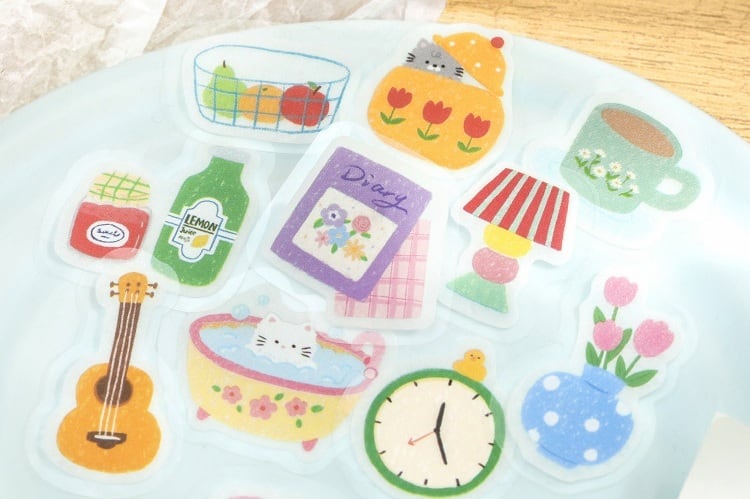 やさしい色合いとあたたかみのあるイラストが魅力の和紙フレークシールです。日常のワンシーンやスイーツ、休日のモチーフなどが揃い、手帳デコや日記デコ、バレットジャーナル、コラージュ素材として幅広くお使いいただけます。和紙ならではのやわらかな質感と自然な透け感で、ページになじみやすく重ね貼りにもおすすめです。ナチュラルな雰囲気や韓国風デコ、海外風コラージュとも相性がよく、ノートやスケジュール帳、メッセージカード、アルバム装飾などさまざまなシーンで活躍する商品です。
