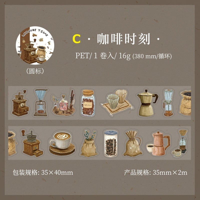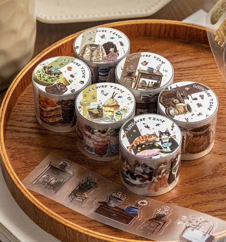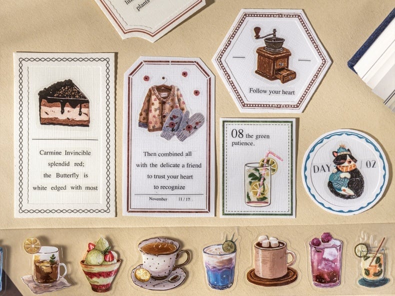【シール】海外文具 PETシール 手帳デコ コラージュ素材 カフェ 猫 スイーツ|Cozy Moments