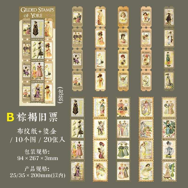 【シール】海外文具 切手風 ヴィンテージ コラージュ素材 手帳デコ 箔押し アンティーク|Gilded old tickets
