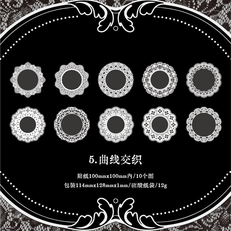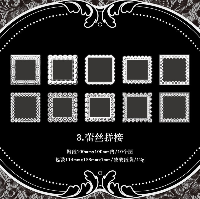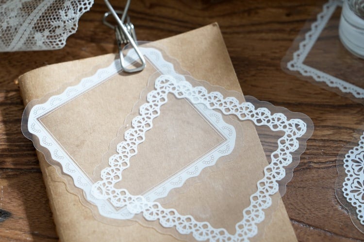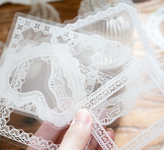 【シール】レース フレーム コラージュ素材 手帳デコ 海外シール PET|Thoughts and Words