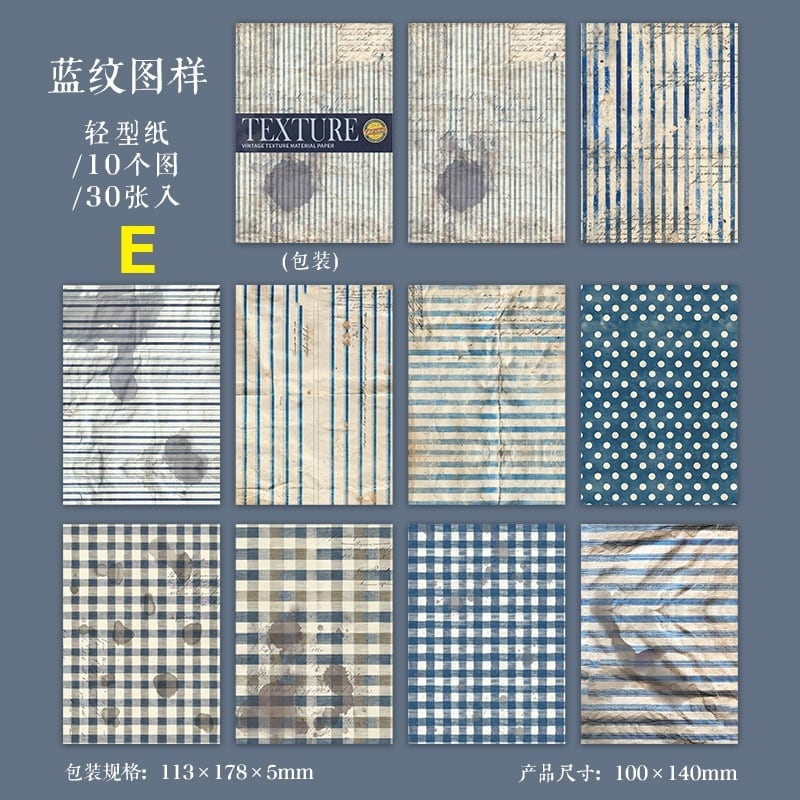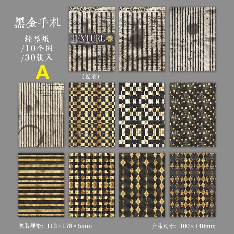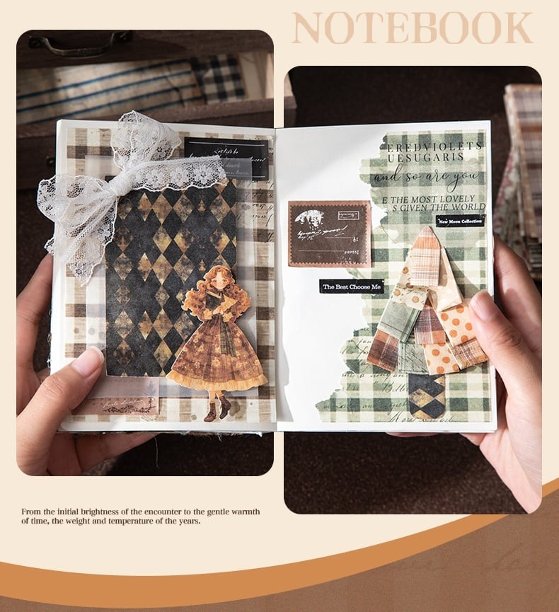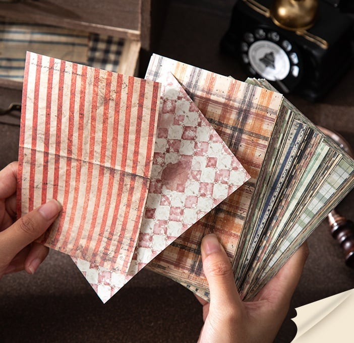 落ち着いた色合いとヴィンテージ感のあるデザインが印象的な素材紙です。チェック柄やドット、ストライプなど使いやすい柄が揃い、コラージュや手帳デコの背景づくりに自然になじみます。軽やかな紙素材で書き込みやスタンプにも対応しており、手でちぎってラフに使うアレンジも楽しめる仕様です。重ね貼りや下地使いとしても取り入れやすく、コラージュ素材や手帳デコ素材を探している方、背景紙として使える紙素材を取り入れたい方にもおすすめです。