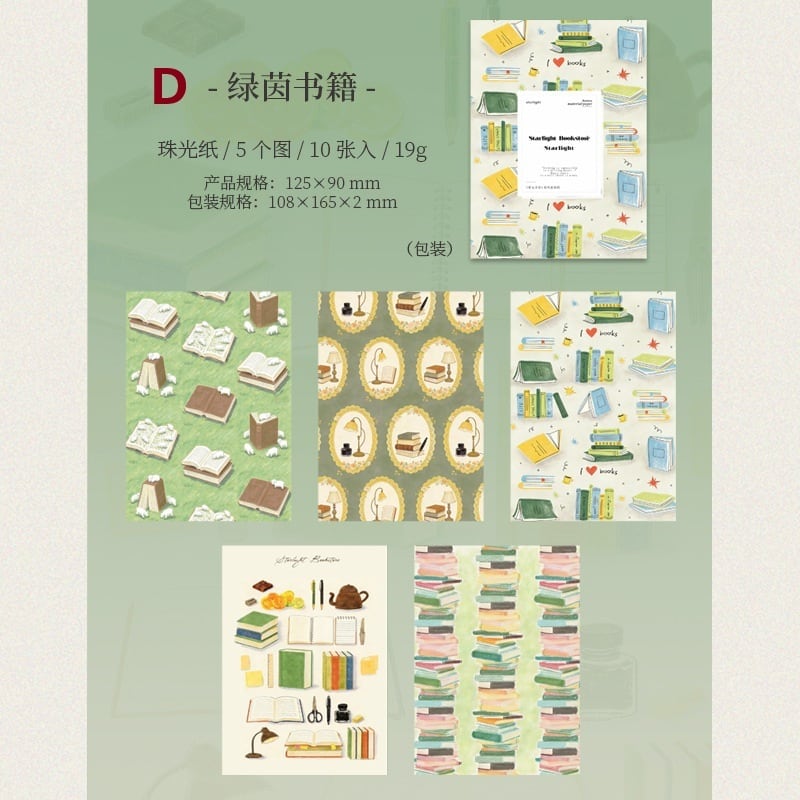 【素材紙】手帳デコ コラージュ素材 デザインペーパー 海外紙もの パール紙 本 猫 星 空|Starlight Bookstore