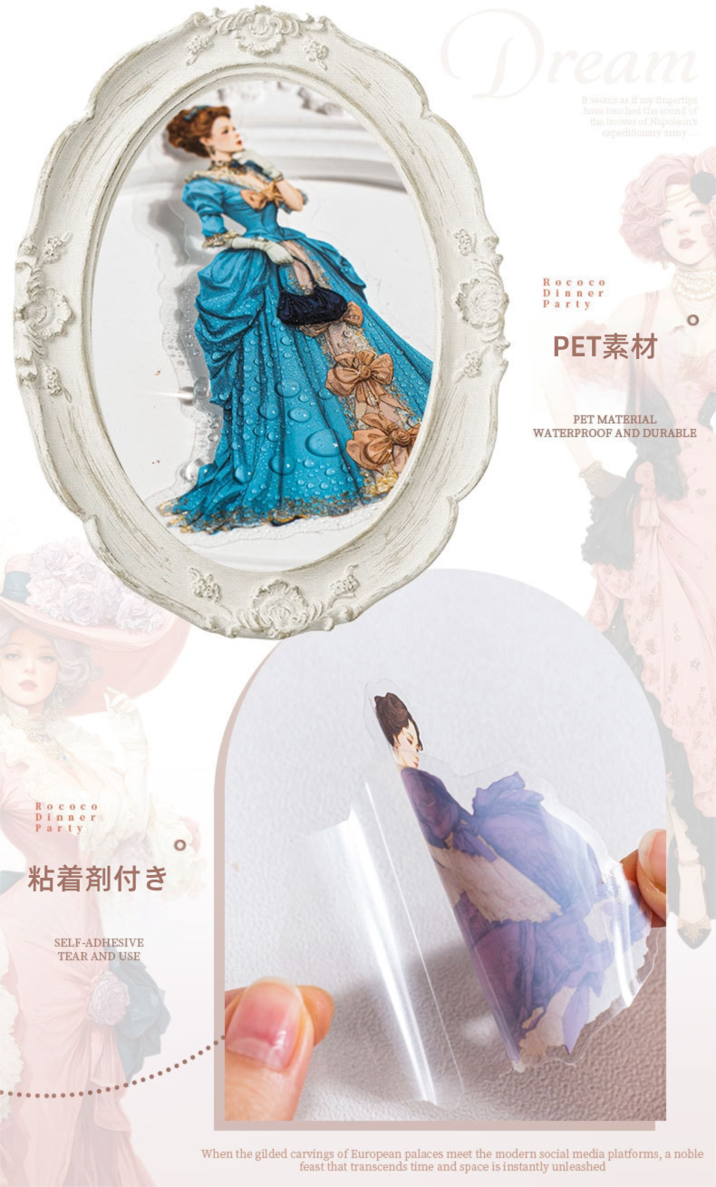 【シール】海外文具 コラージュ素材 手帳デコ 人物シール PET ロココ調|Rococo Banquet