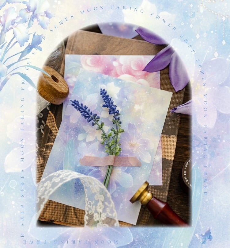 【素材紙】海外文具 コラージュ素材 手帳デコ 花柄 猫 ファンタジー デザインペーパー|Moon Falling Flower Sleep