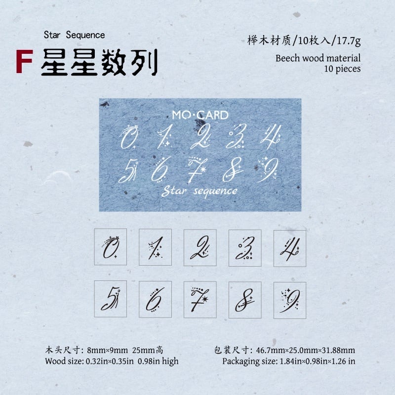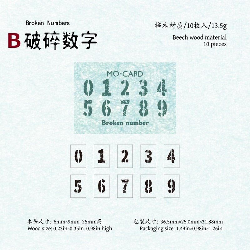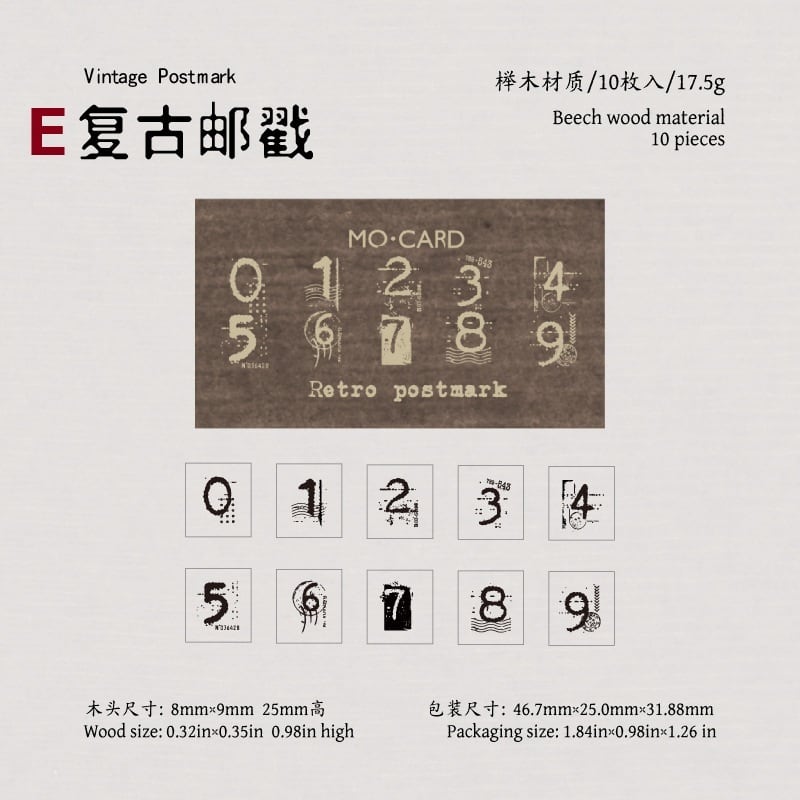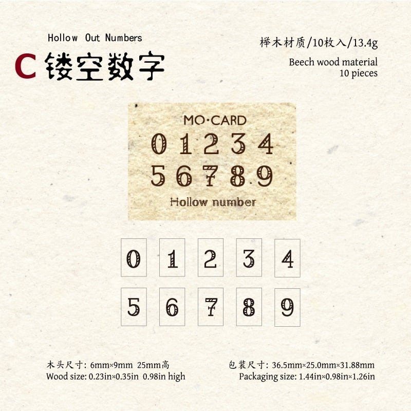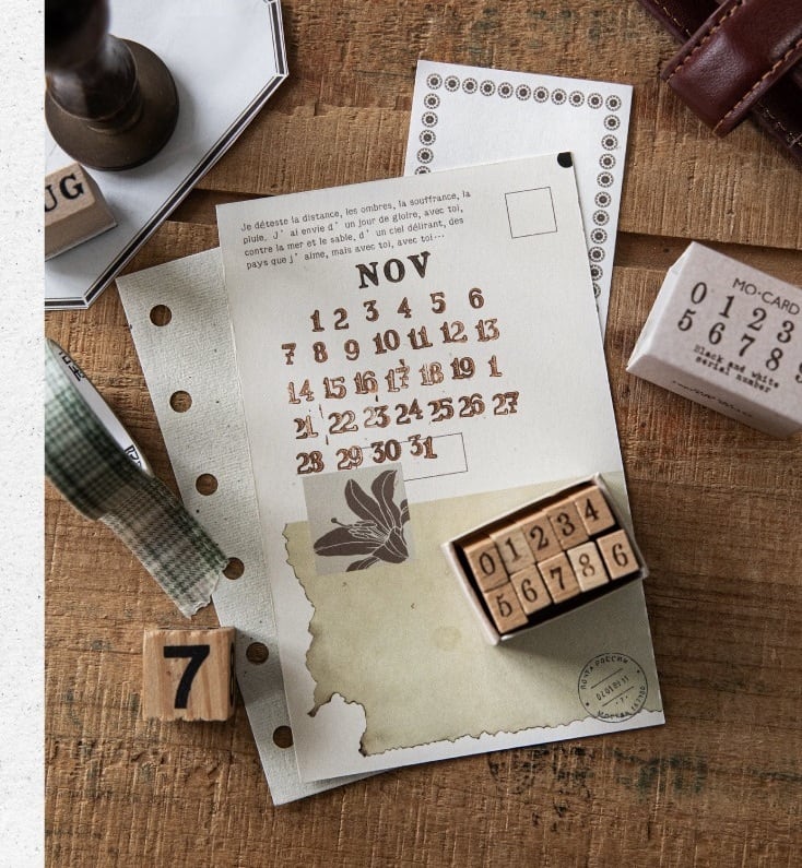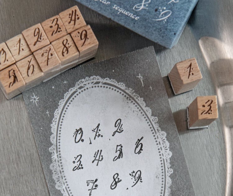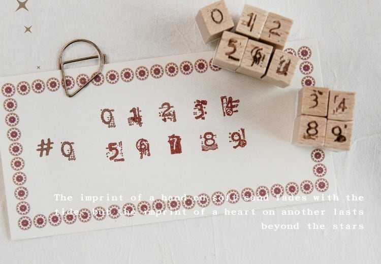ナチュラルな木の風合いがやさしく手に馴染む、数字デザインの木製スタンプです。0〜9まで揃っているため、日付や番号、ちょっとした記録をさりげなく残したいときに取り入れやすい仕様になっています。シンプルな数字から、かすれたヴィンテージ風や装飾のあるデザインまで揃っており、手帳やノート、コラージュの雰囲気に合わせて使い分けていただけます。小さめサイズで扱いやすく、紙ものとの相性も良いため、さりげないアクセントとして自然に馴染むスタンプです。