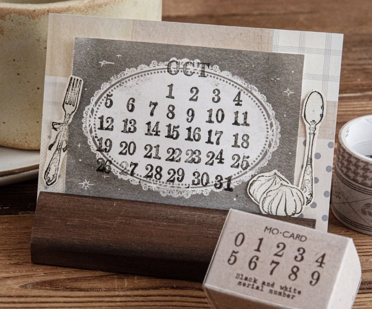 【スタンプ】数字スタンプ 木製 コラージュ 手帳デコ 日付記録 海外文具|Digital Number Stamp