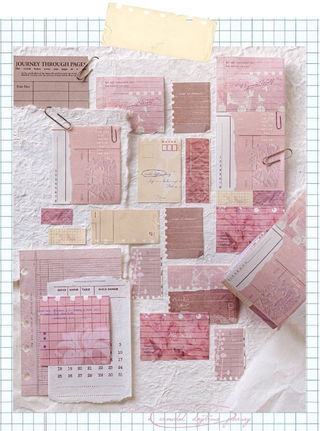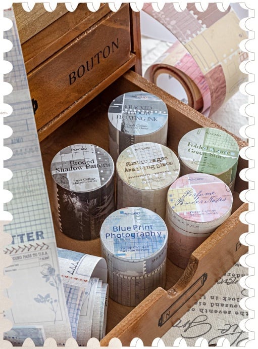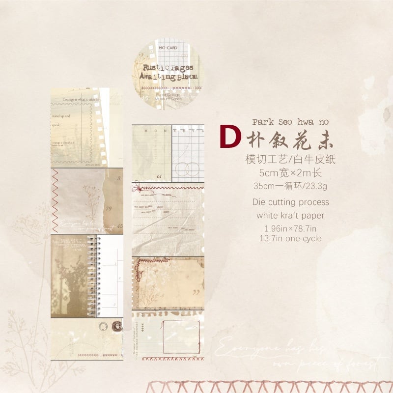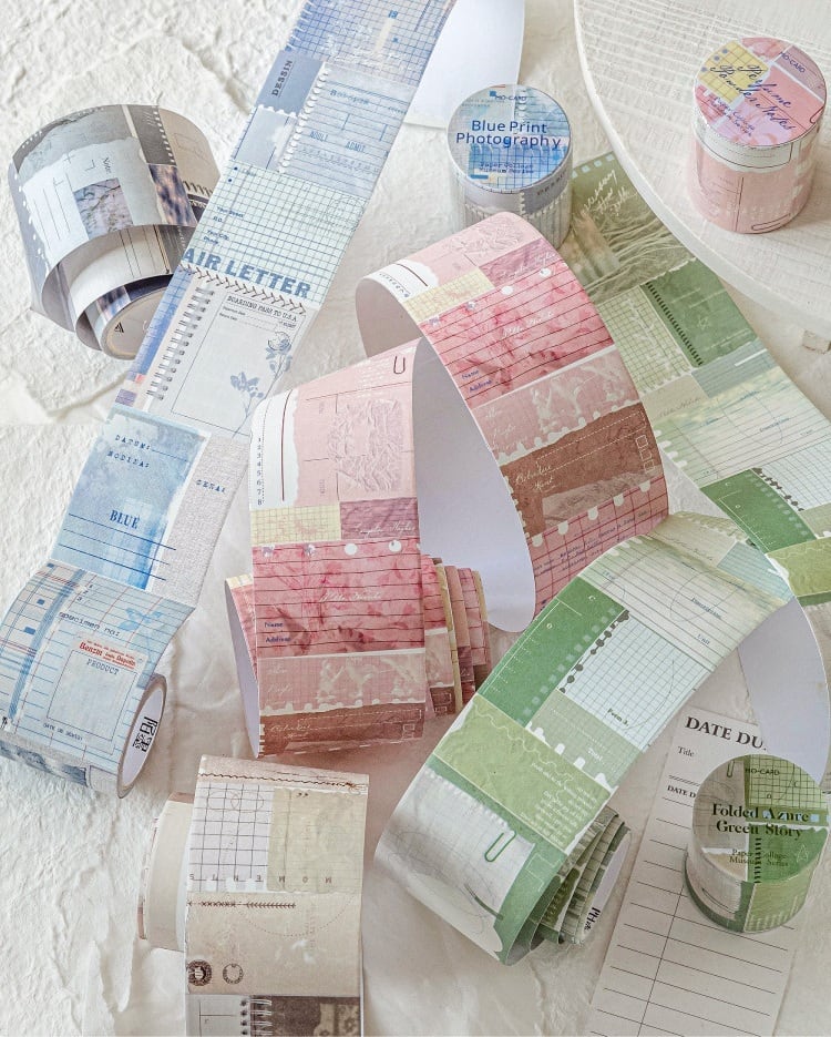 落ち着いた色合いと紙の質感が印象的な、ロールタイプの紙素材シールです。手帳デコやコラージュ素材として取り入れやすく、ノートや日記にも自然に馴染むデザインに仕上がっています。ロール状で使いやすく、必要な分だけ切り離しながら使えるため、レイアウトに合わせたアレンジも楽しめます。罫線やメモ風のデザインも含まれており、記録やデコレーションのアクセントとしてさりげなく活躍します。コラージュや手帳デコに統一感と奥行きを加えたい方におすすめの紙素材シールです。