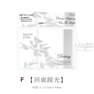 光と影、静かな日常の一瞬を切り取った写真風デザインをあしらったメモ帳です。グラスやカーテン、植物の影など、余白を活かしたモノトーンのビジュアルに英文テキストを組み合わせ、書き込むたびに気持ちが整うような落ち着いた雰囲気に仕上げられています。文字を書いてもデザインを邪魔しにくく、メモやひとこと記録、手帳への貼り込み、コラージュ素材としても使いやすい仕様です。モノトーンデザイン、写真風ビジュアル、英文入りのメモ帳や紙もの文房具をお探しの方におすすめの商品です。