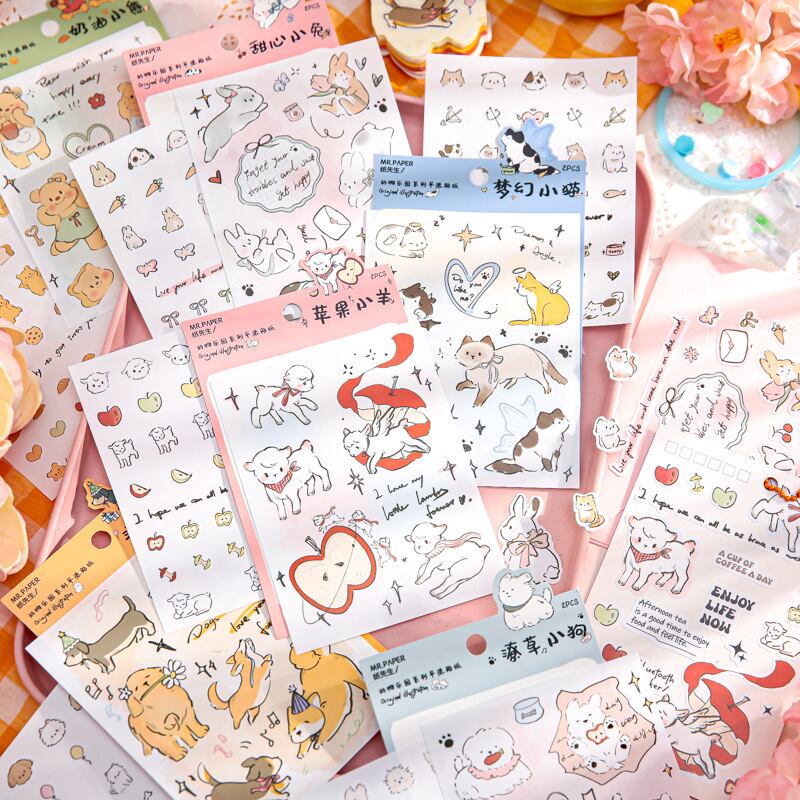 全6種類のデザインがあり、どの子も愛らしさ満点!手帳やノート、手紙などに貼ってお楽しみください。