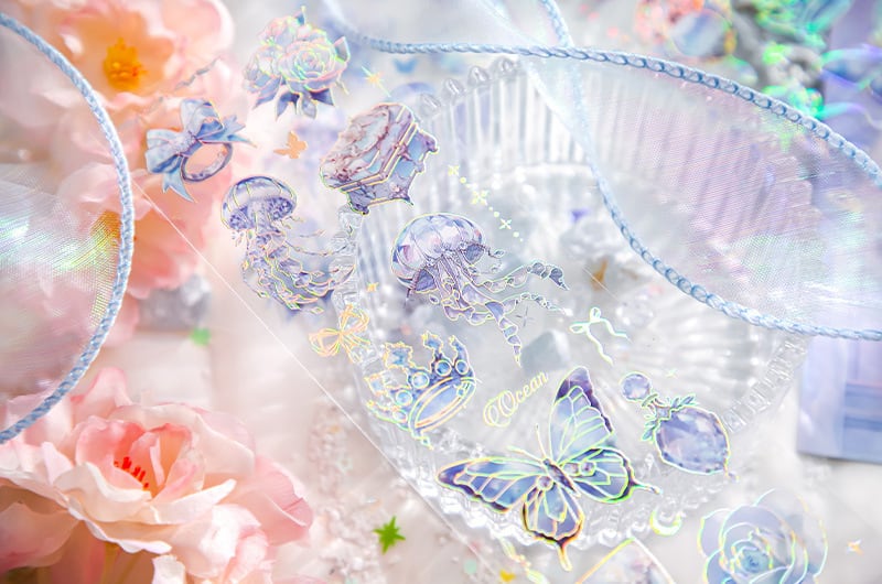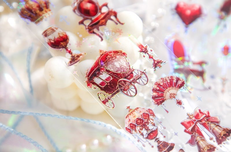 浮雕烫金を施した美しいデザインのシートシールです。繊細な浮き出し加工と輝く金箔が、コラージュに特別な輝きを添えます。手紙やカード、プレゼント包装など、様々な用途におすすめです。