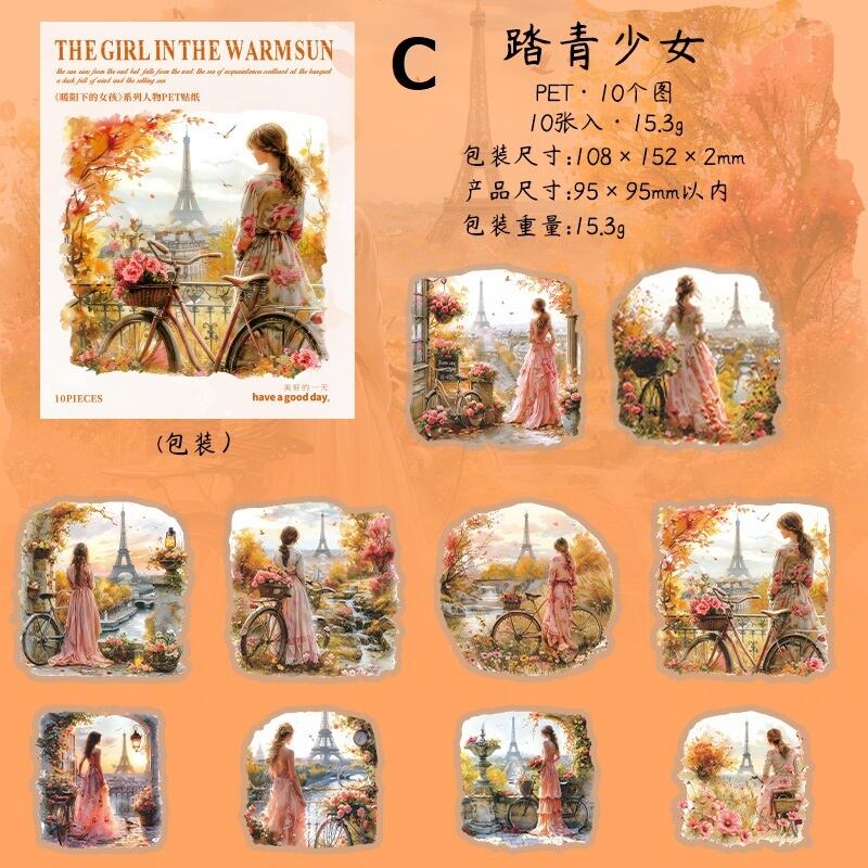 少女が暖かい陽光に照らされながら眺めている風景が描かれています。その繊細な描写や美しい色使いは、まるで絵画のような魅力を持っています。貼り付けるだけで、日常の中に幻想的な世界を作り出すことができる商品です。