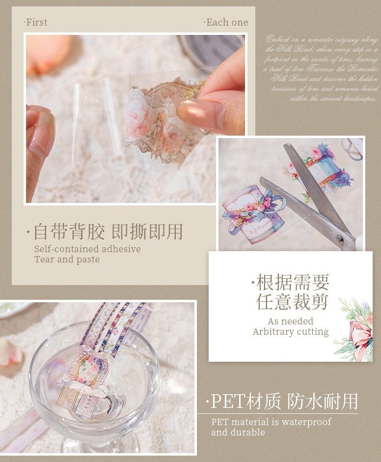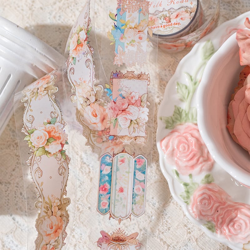 アンティークなデザインが魅力的なマスキングテープです。繊細な色彩と柄が、日常のノートや手帳を一気に華やかに彩ります。
