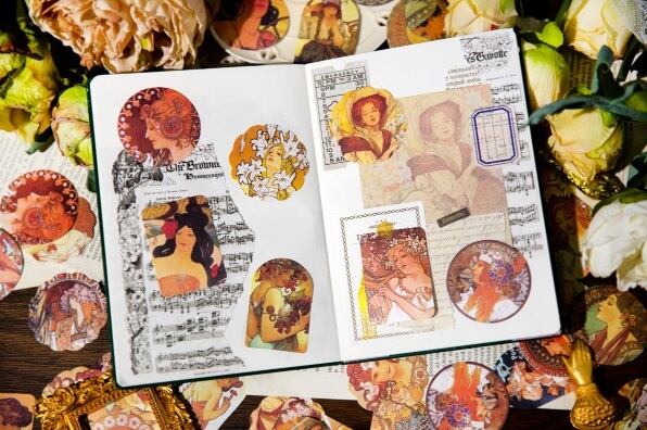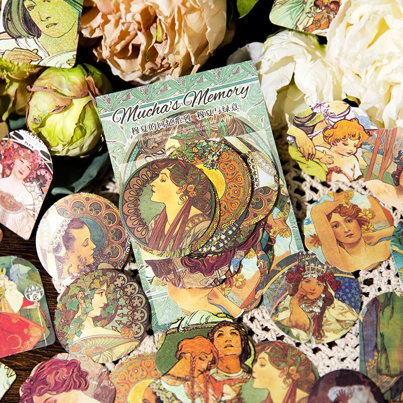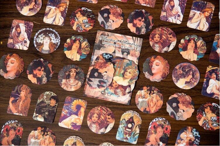 Muchaの世界観が好きな方におすすめのフレークシールです。お手紙や日記、手帳など、気軽に芸術的な世界を楽しめます。