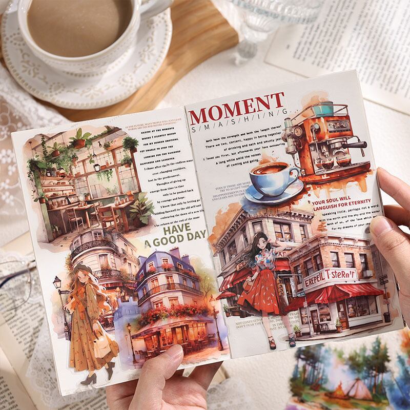 各種テーマに沿った様々なシーンがデザインされたフレークシールです。統一性のあるデザインや色彩はコラージュに使い易く、世界観を作るのにおすすめです。