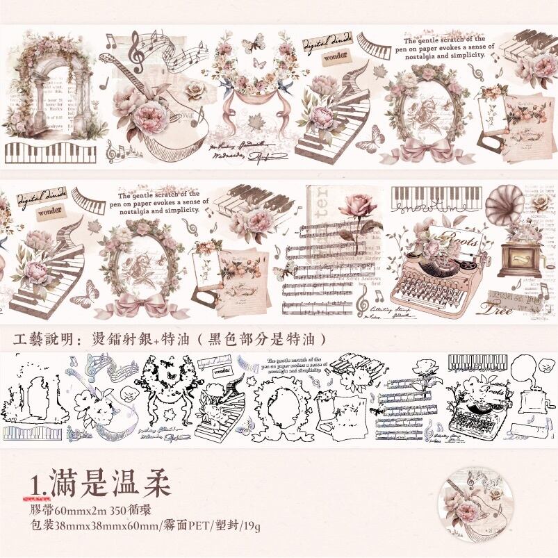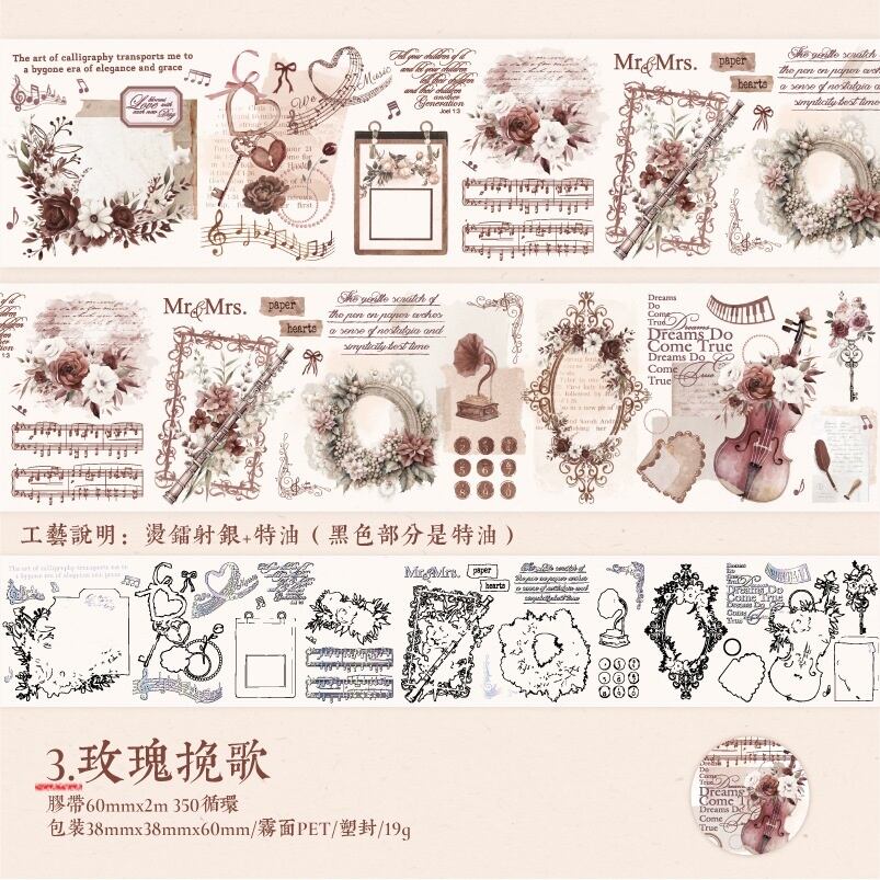 アンティークなデザインが魅力のマスキングテープです。華やかさがありながら落ち着きのある上品な色彩で、お洒落なコラージュをお楽しみいただけます。