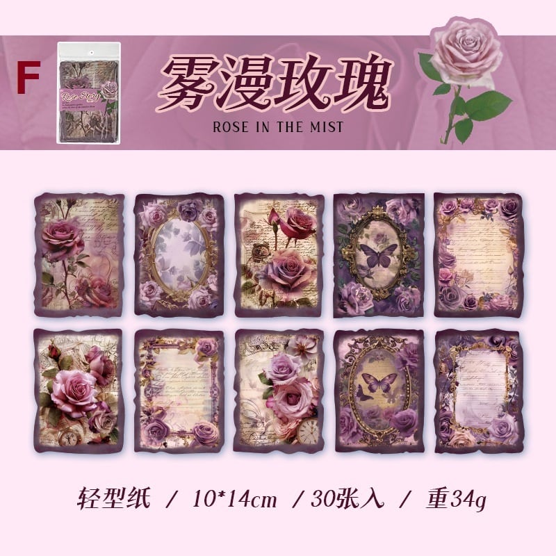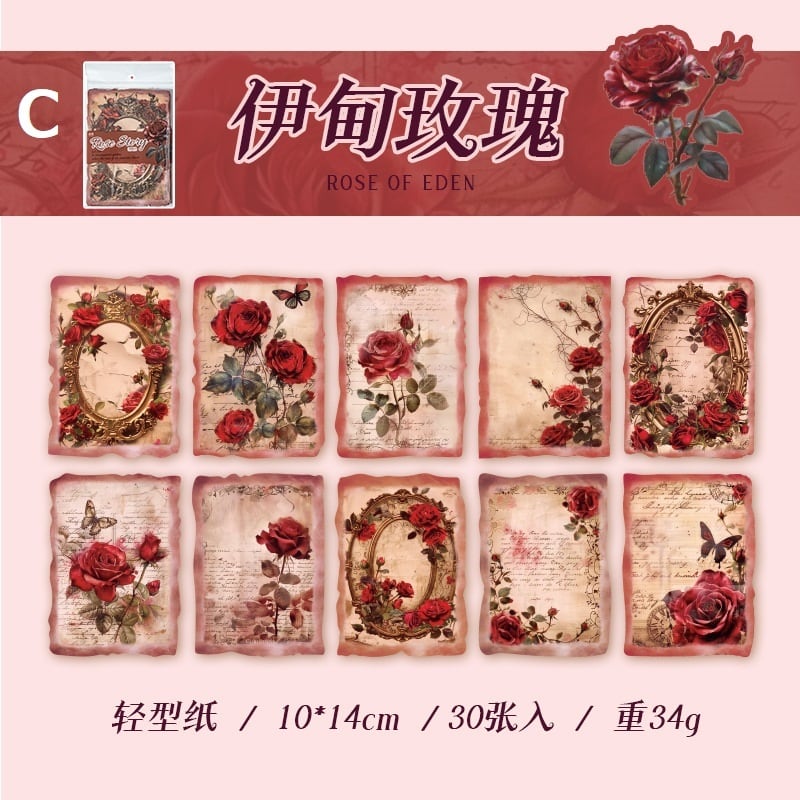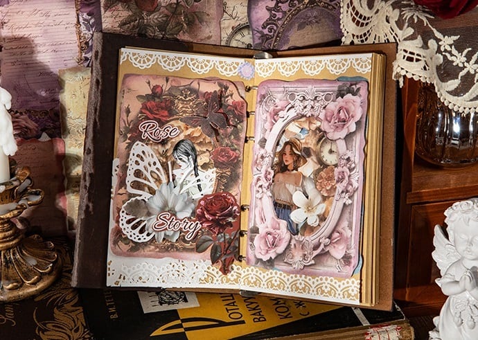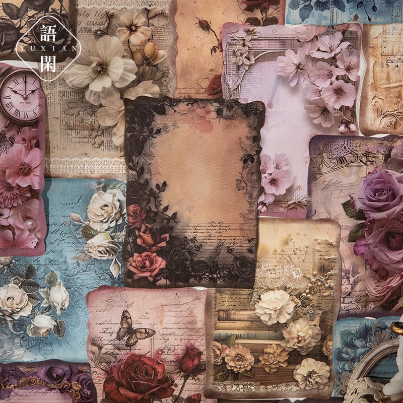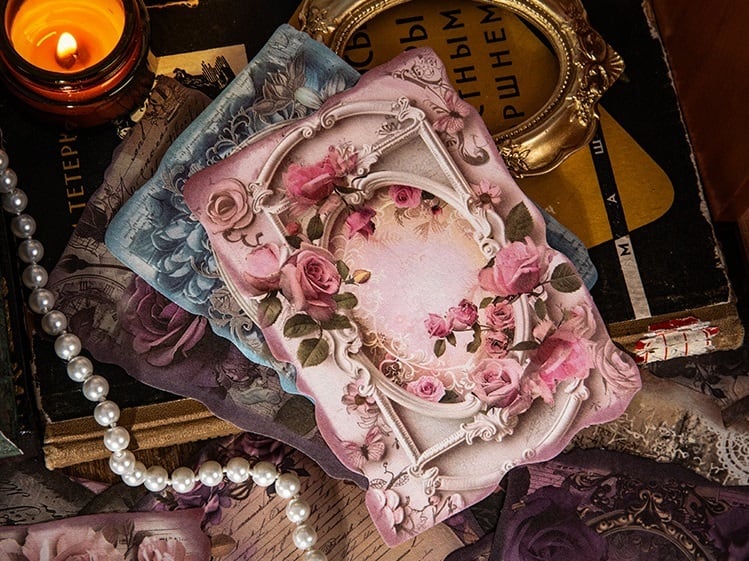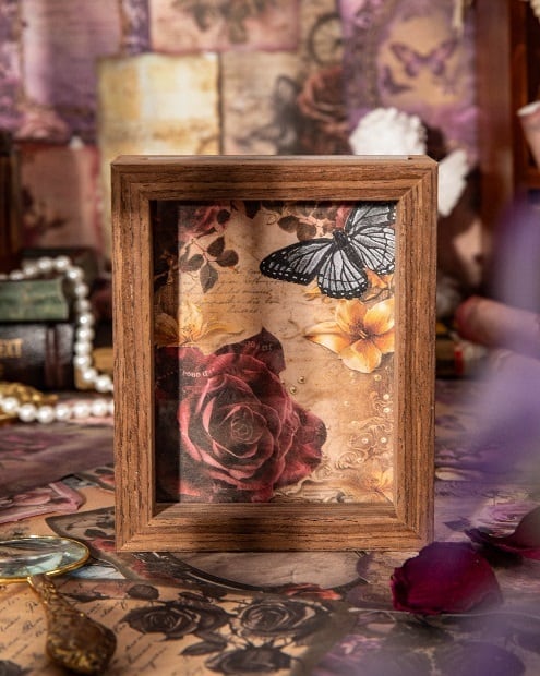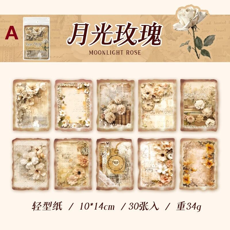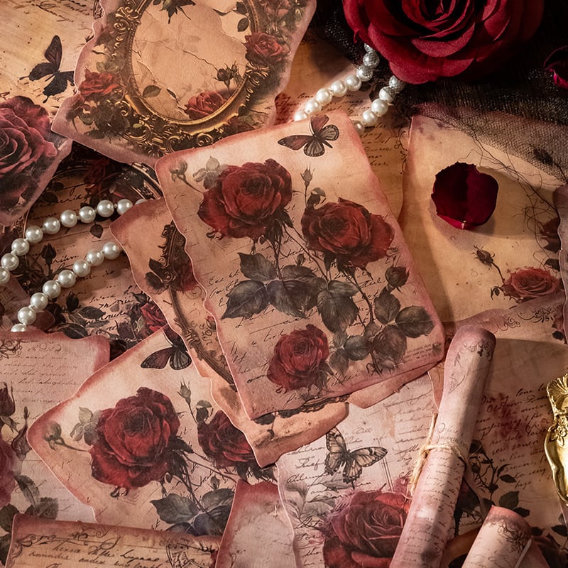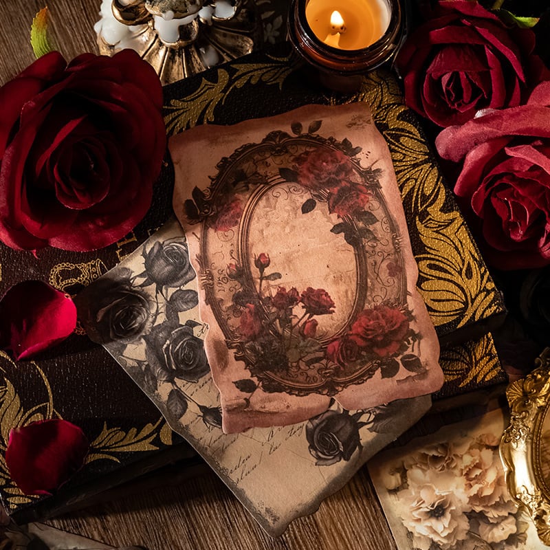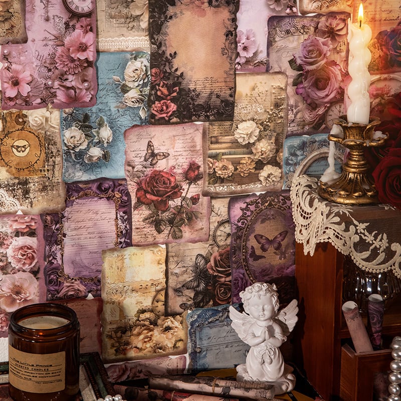 ヴィンテージな薔薇をモチーフにした素敵なデザインペーパーです。美しい薔薇のイラストが緻密に描かれ、どんなクラフト作品にも華やかさをプラスしてくれます。