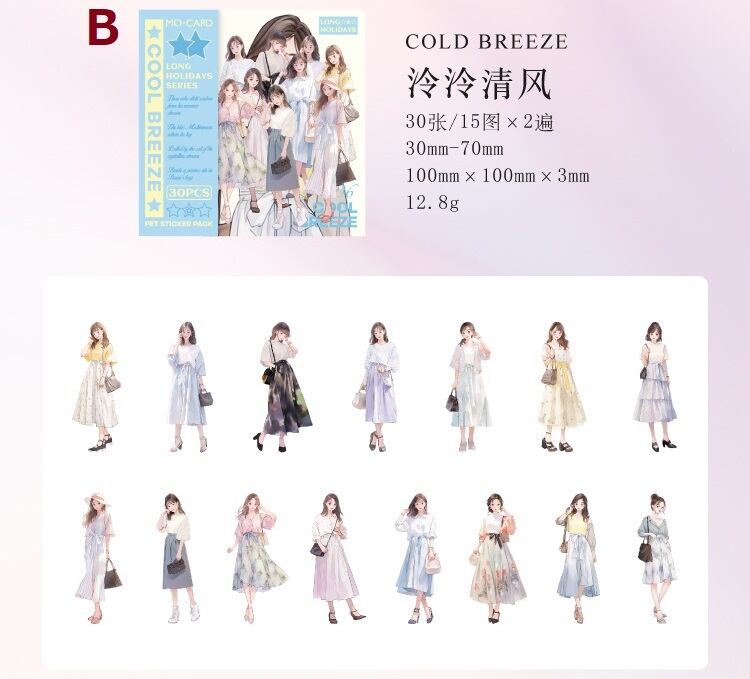可愛い女の子のデザインが揃ったフレークシールです。1枚貼るだけで手軽におしゃれなアクセントになります。手帳やノートなど貼って、華やかなコラージュをお楽しみください。