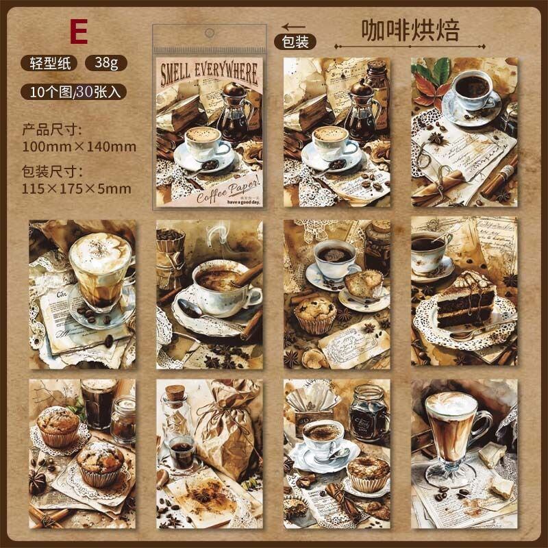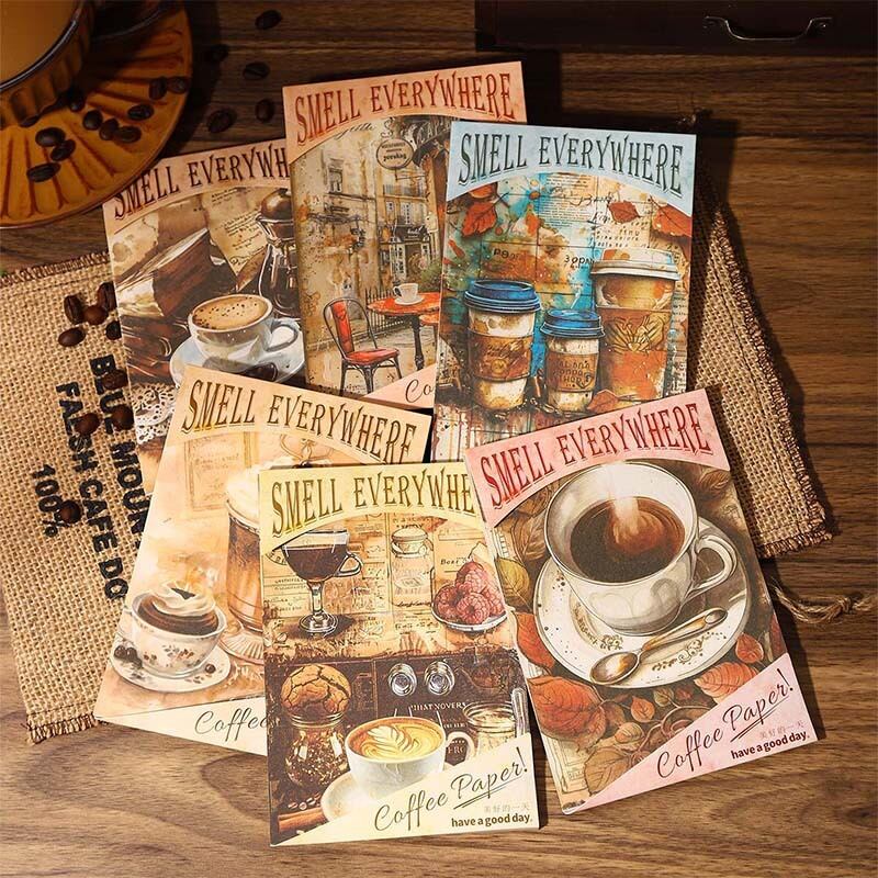 コーヒーの豊かな香りを感じるようなデザインの素材紙です。カフェをテーマにした美しいデザインで、お部屋のインテリアやコラージュをおしゃれに演出します。