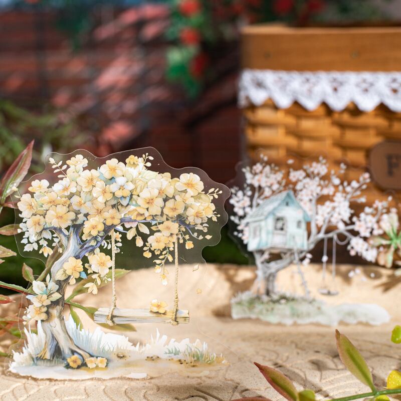幻想的な木をテーマにした大きめのフレークシールです。自然の美しさをモチーフにしたデザインが魅力的で、コラージュやスクラップブッキングなど、さまざまなアート作品に彩りを添えることができます。手軽に個性的な表現を楽しむことができる商品です。