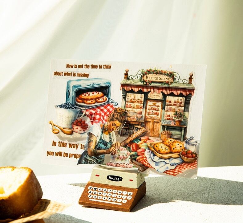 お菓子作りがテーマの可愛らしいフレークシールです。焼き菓子やデコレーションケーキなど、スイーツ好きにはたまらないデザインが特徴で、手帳やジャーナルのデコレーションに最適です。おしゃれで楽しい雰囲気を演出できるので、さまざまなシーンで活躍します。