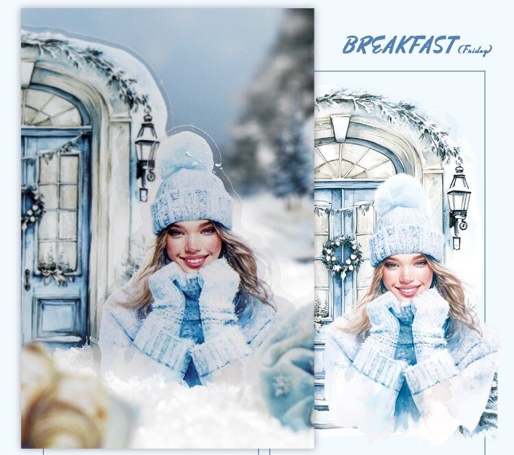 冬がテーマのフレークシールです。美しいデザインが手帳やコラージュに素敵なアクセントを加えてくれます。心温まる冬の雰囲気を楽しんでみてください。